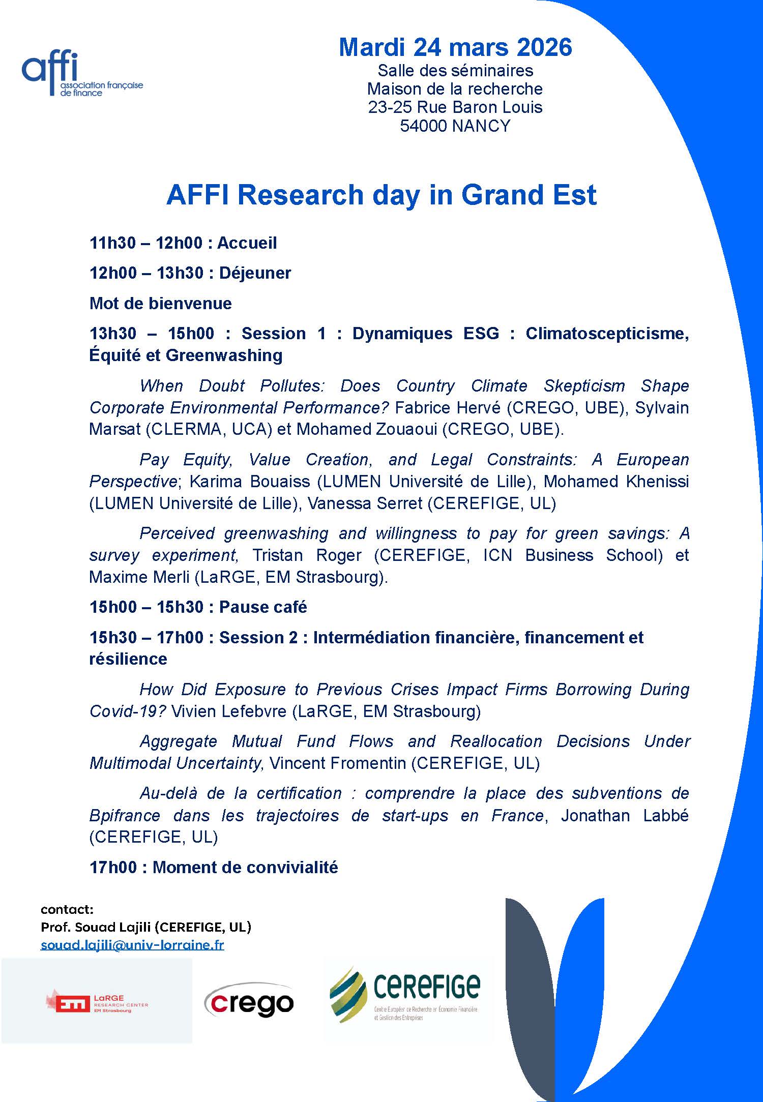 The French Finance Association (AFFI) takes big pride in organizing conferences, seminars & working groups and in particular the annual conference of its members.